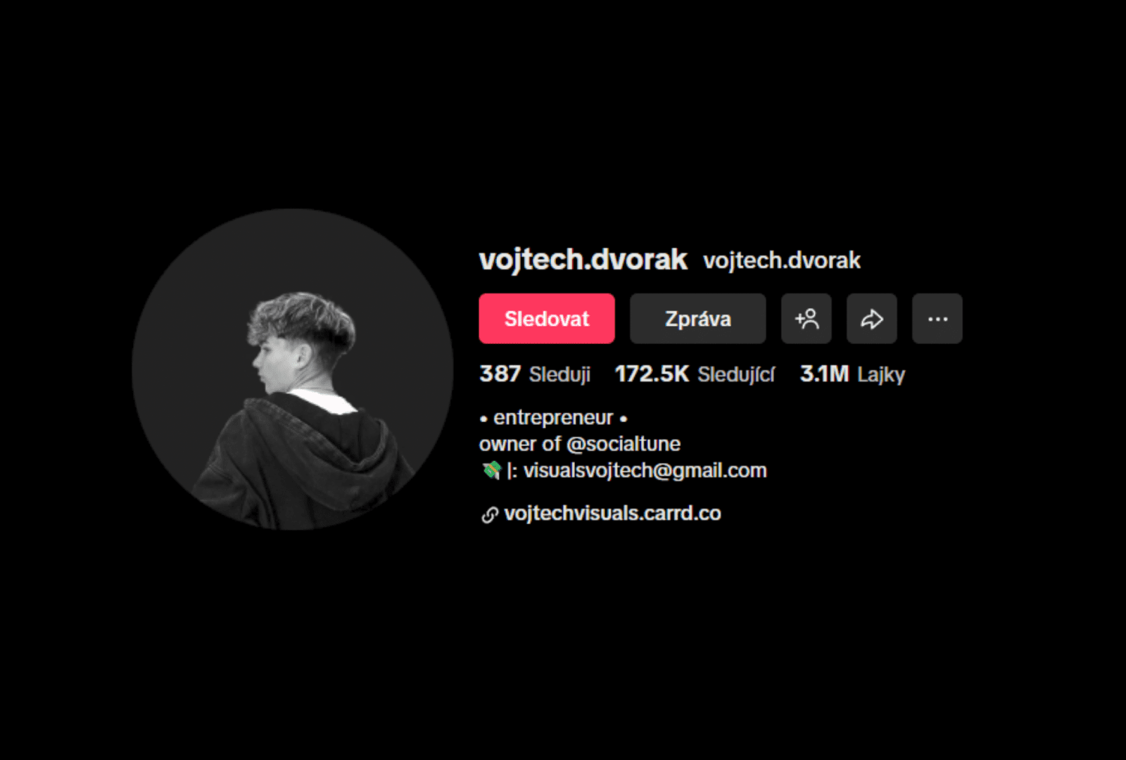 Ještě před založením SocialTune jsem vybudoval vlastní osobní brand na platformě TikTok, kde jsem dosáhl více než 170 000 sledujících.